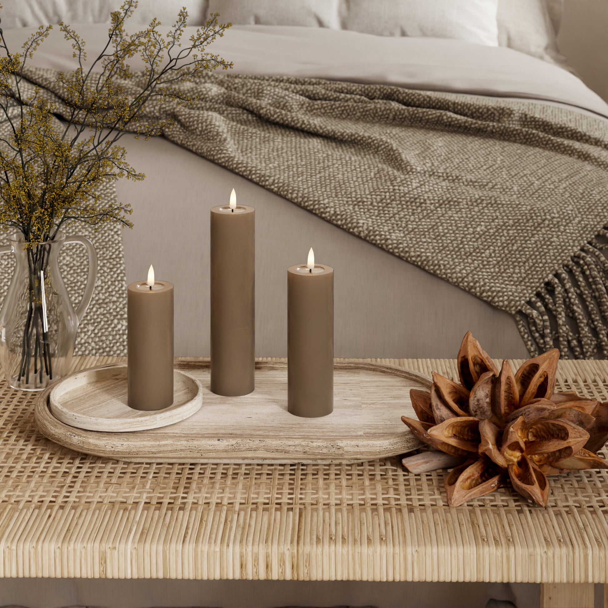LED blokové světlo - Ø 5 x 12,5 + 15 + 20 cm Karamelová