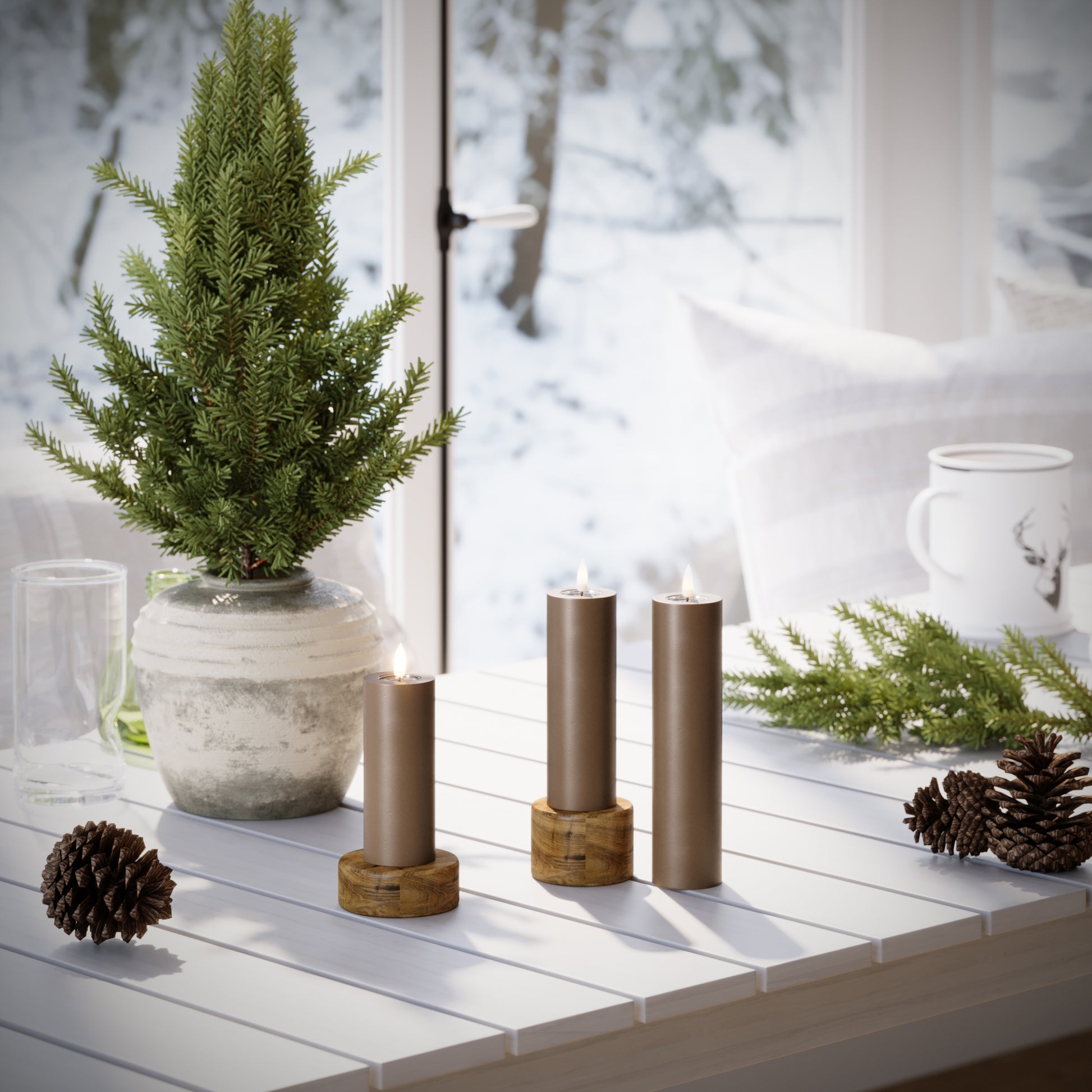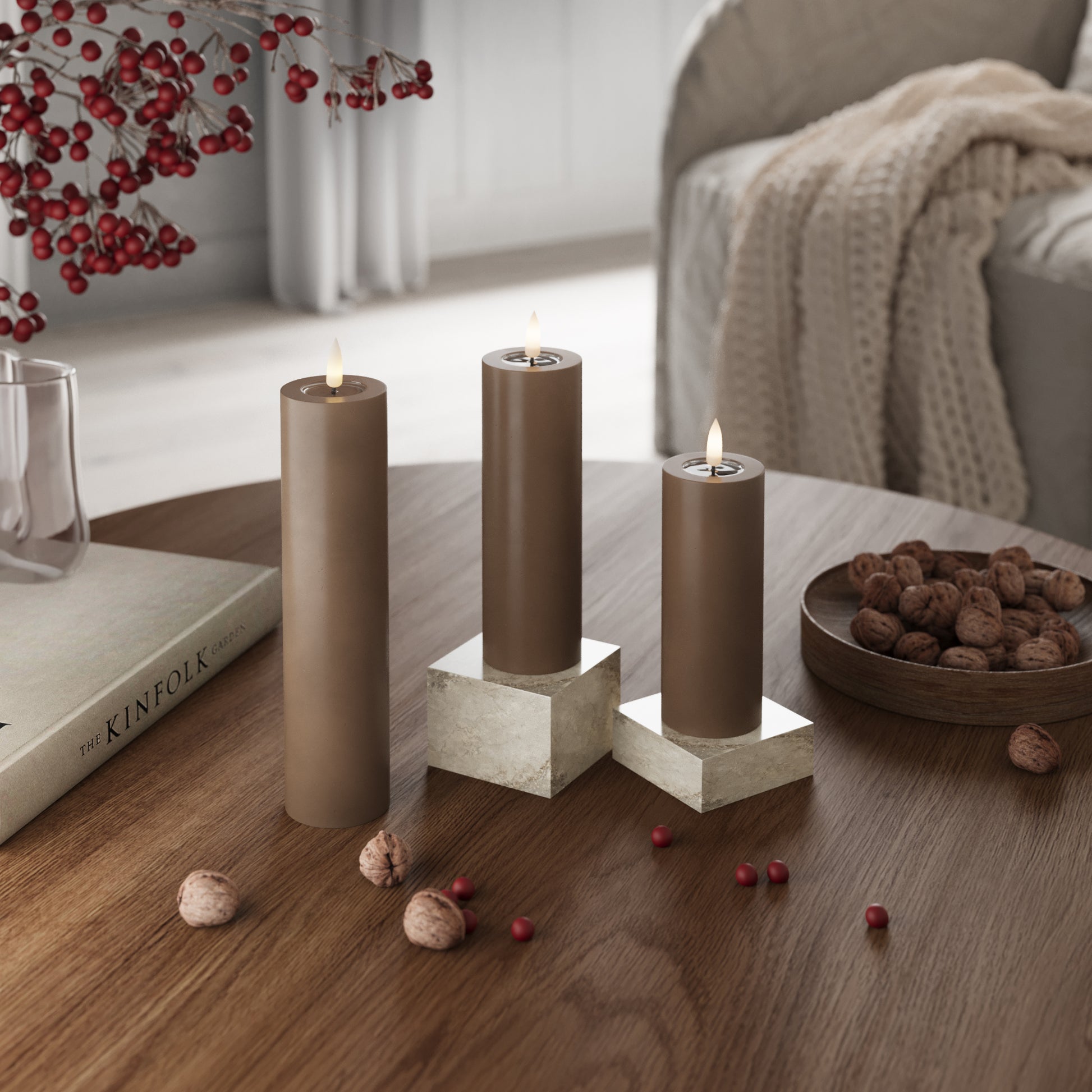 Bloklys er perfekte til dekorationer. Saml dem på et fad, i en lanterne eller i vindueskarmen for en rolig stemning.