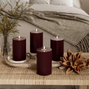 LED Bloklys Ø 10 x 15 cm Bourgogne - 4 stk