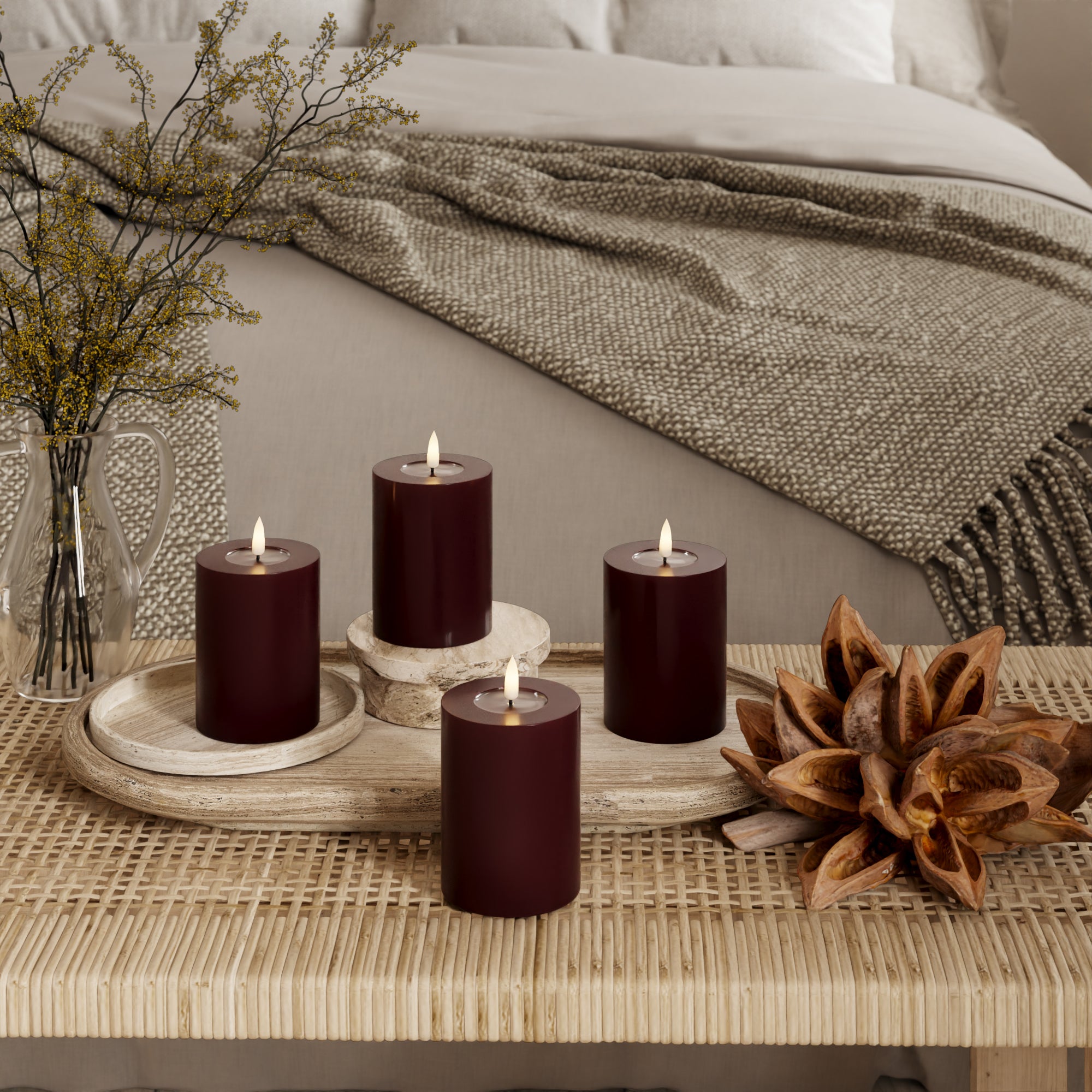 LED Bloklys Ø 7,5 x 10 cm Bourgogne - 4 stk