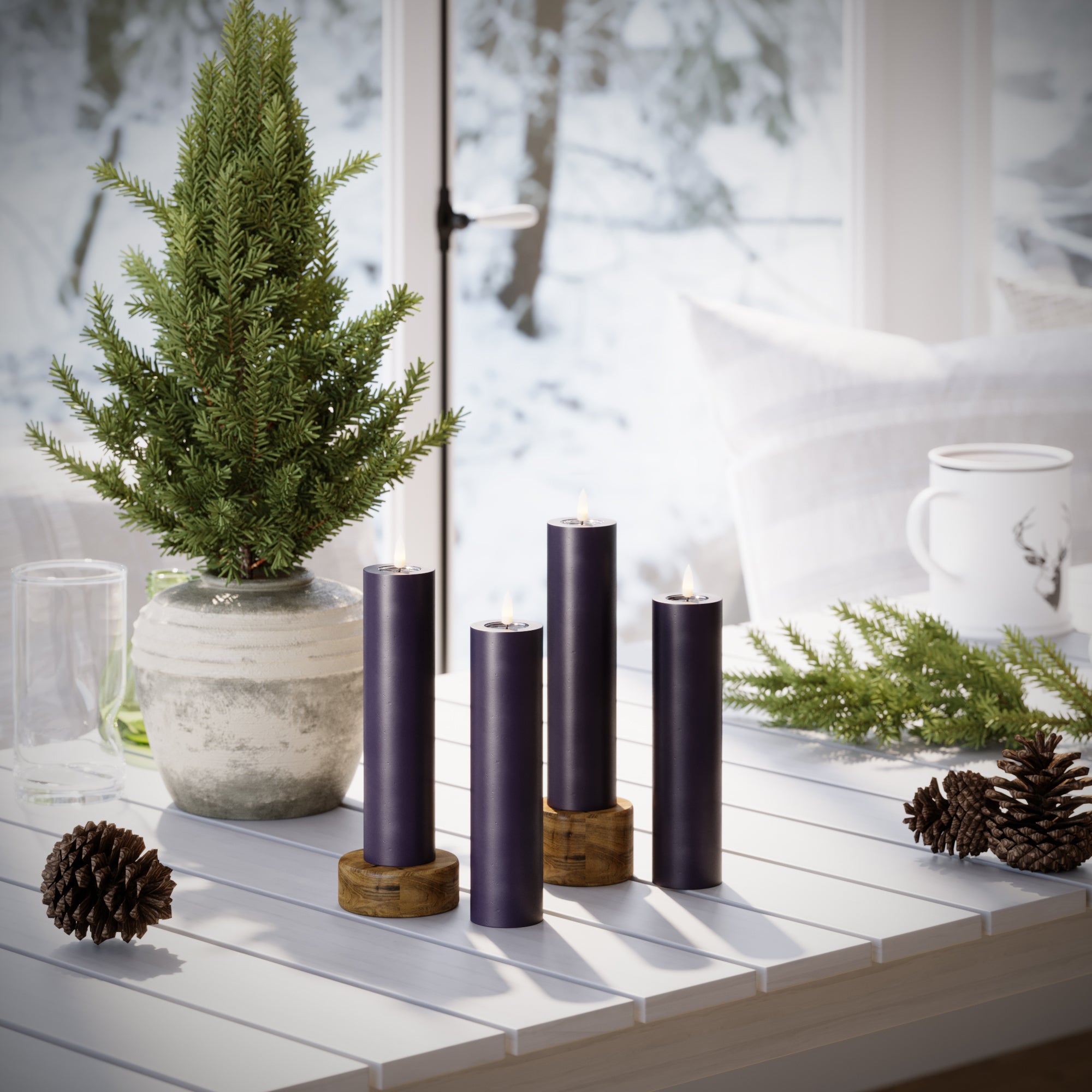 LED-Blockkerzen Ø 5 x 20 cm Dunkellila – 4 Stück