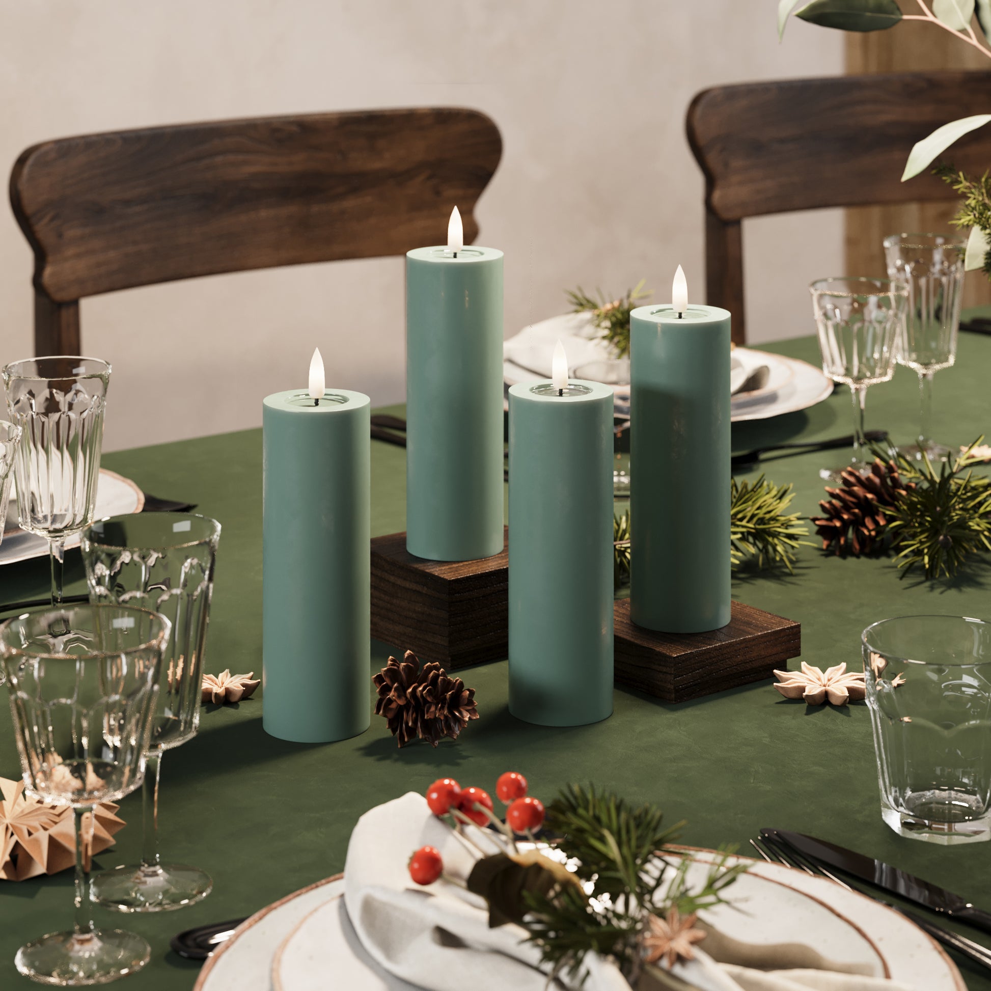 - LED Bloklys Ø 5 x 15 cm Jade Grøn + 4 stk