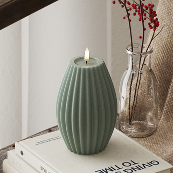 Produktet kan findes i: API dell'impiegato, Candela a pilastro - Tutto, GUIDATO Candela rigata, GUIDATO Candela rigata D 10 x H 15 cm, Luce indoor a LED, Stagioni, Tutto, Verde salvia