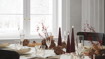 Produktet kan findes i: Alle, Bordeaux, Clerk Api, Kjegle lys d 5 x h 20 cm, LED Councilllight, LED Innendørs lys, LED kjeglelys burgunder, Middagslys, Vinter, Årstider