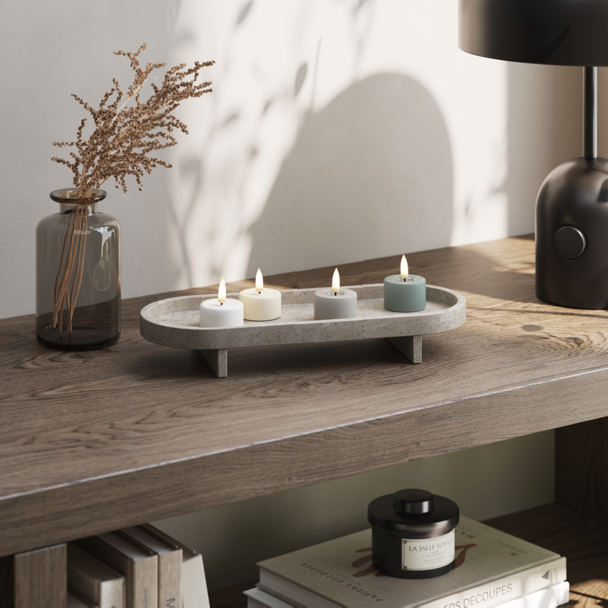 Nossas velas são cuidadosamente projetadas com um topo de resina que cria um efeito autêntico, como se as velas estivessem acesas há algum tempo. Esta característica especial torna as nossas velas incrivelmente realistas, especialmente quando a chama lança o seu brilho quente na superfície da resina.