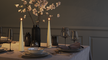 Keglelys er et elegant statement. Den koniske form giver højde og ro, især på skænk eller spisebord.